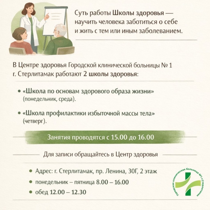 В Центре здоровья Городской клинической больницы № 1 работают 2 школы здоровья: